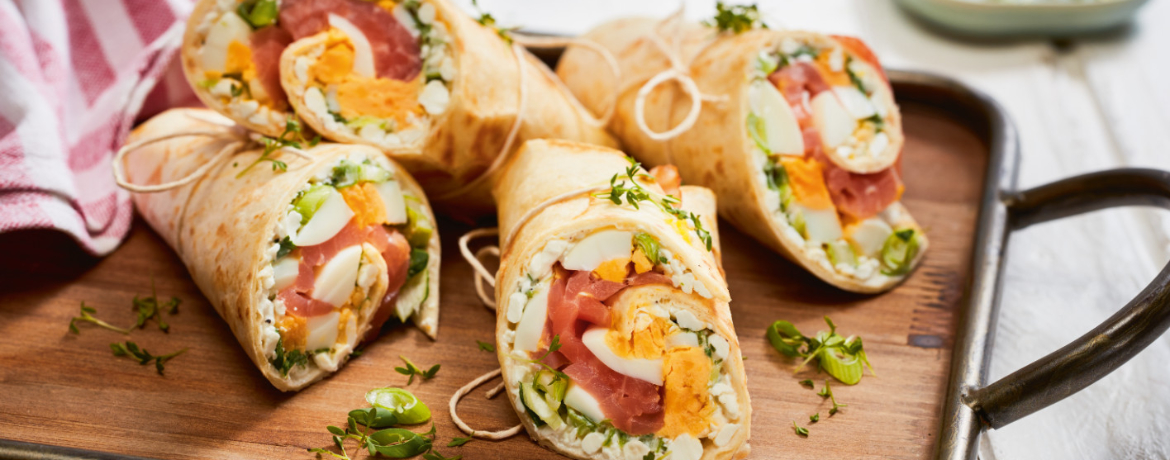 Dieser spezielle Wrap mit Lachs, Kresse und Ei ist besonders gesund und dank der Zutaten äußerst